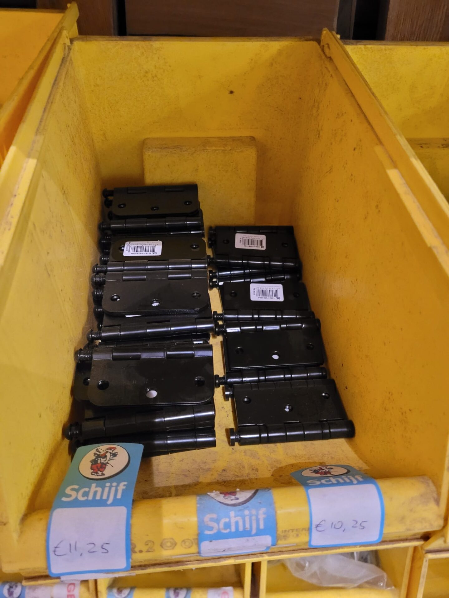 Bij ons vindt u niet alleen een uitgebreid assortiment gebruikte bouwmaterialen, maar ook een selectie nieuwe scharnieren. Omdat we ons richten op het hergebruik van bestaande materialen en het op maat maken van deuren, begrijpen we dat sommige klanten de voorkeur geven aan nieuwe scharnieren voor optimale stevigheid en betrouwbaarheid. Deze nieuwe scharnieren combineren het beste van twee werelden: ze zorgen voor een lange levensduur en passen perfect bij onze maatwerkdeuren gemaakt van hergebruikte materialen.