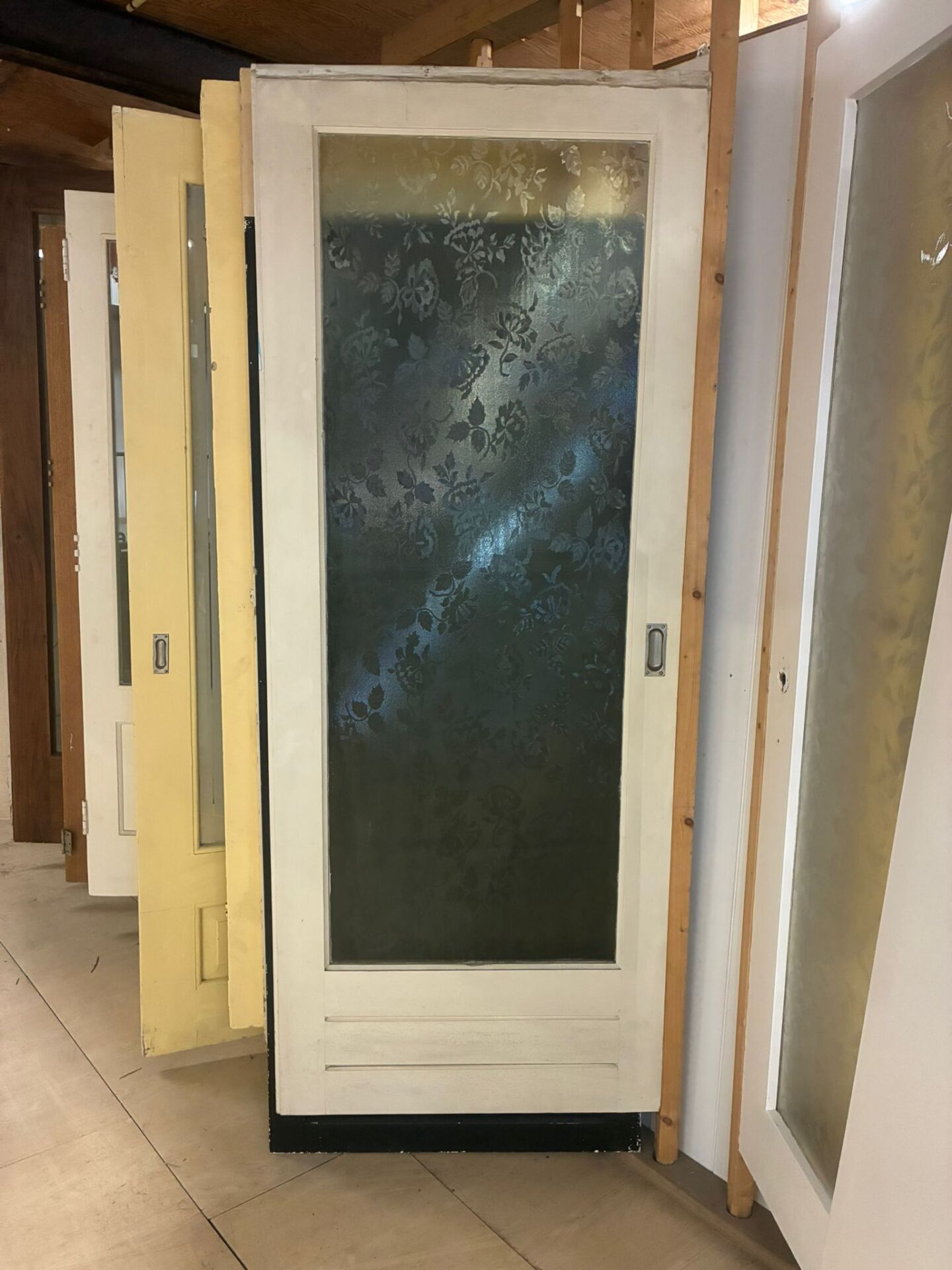 Bij ons in de winkel vind je meerdere deuren met bloemen figuurglas allemaal in prima staat en klaar voor een nieuw leven. Elke deur heeft zijn eigen uitstraling en biedt een perfecte combinatie van lichtdoorlatendheid en privacy. Omdat het om oude deuren gaat, zijn ze stuk voor stuk uniek en dragen ze karakter en charme mee.