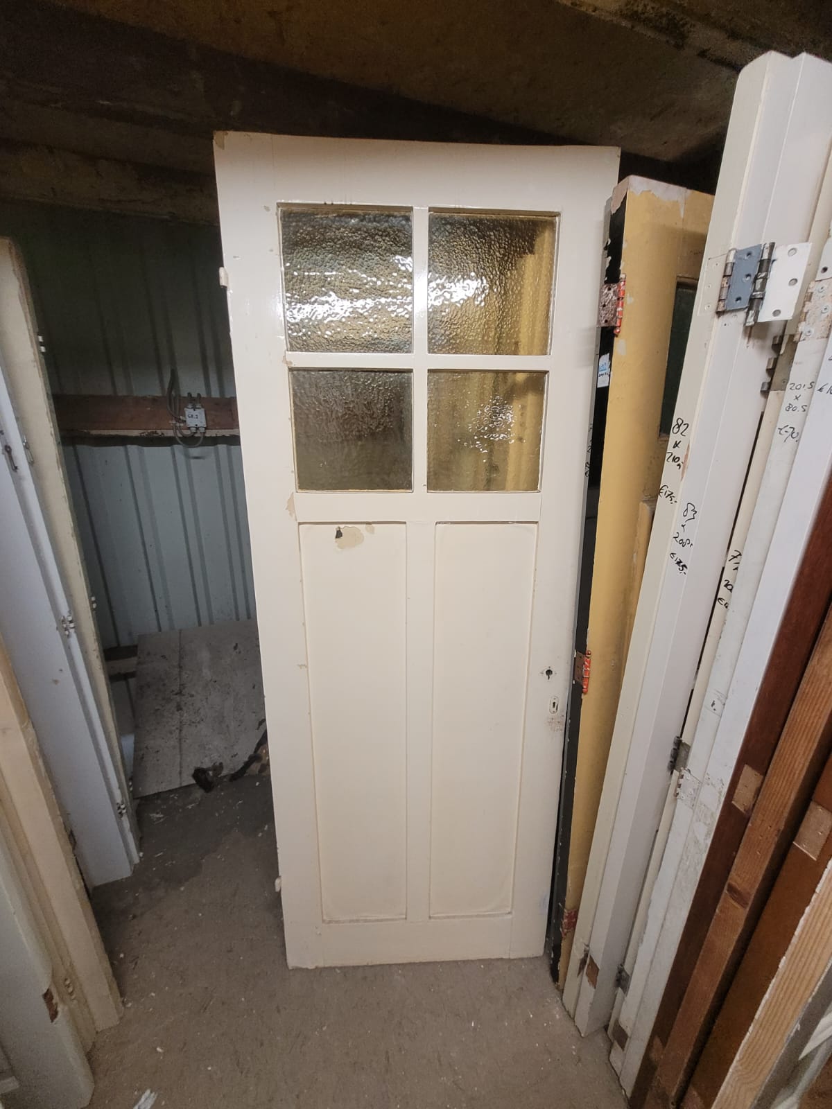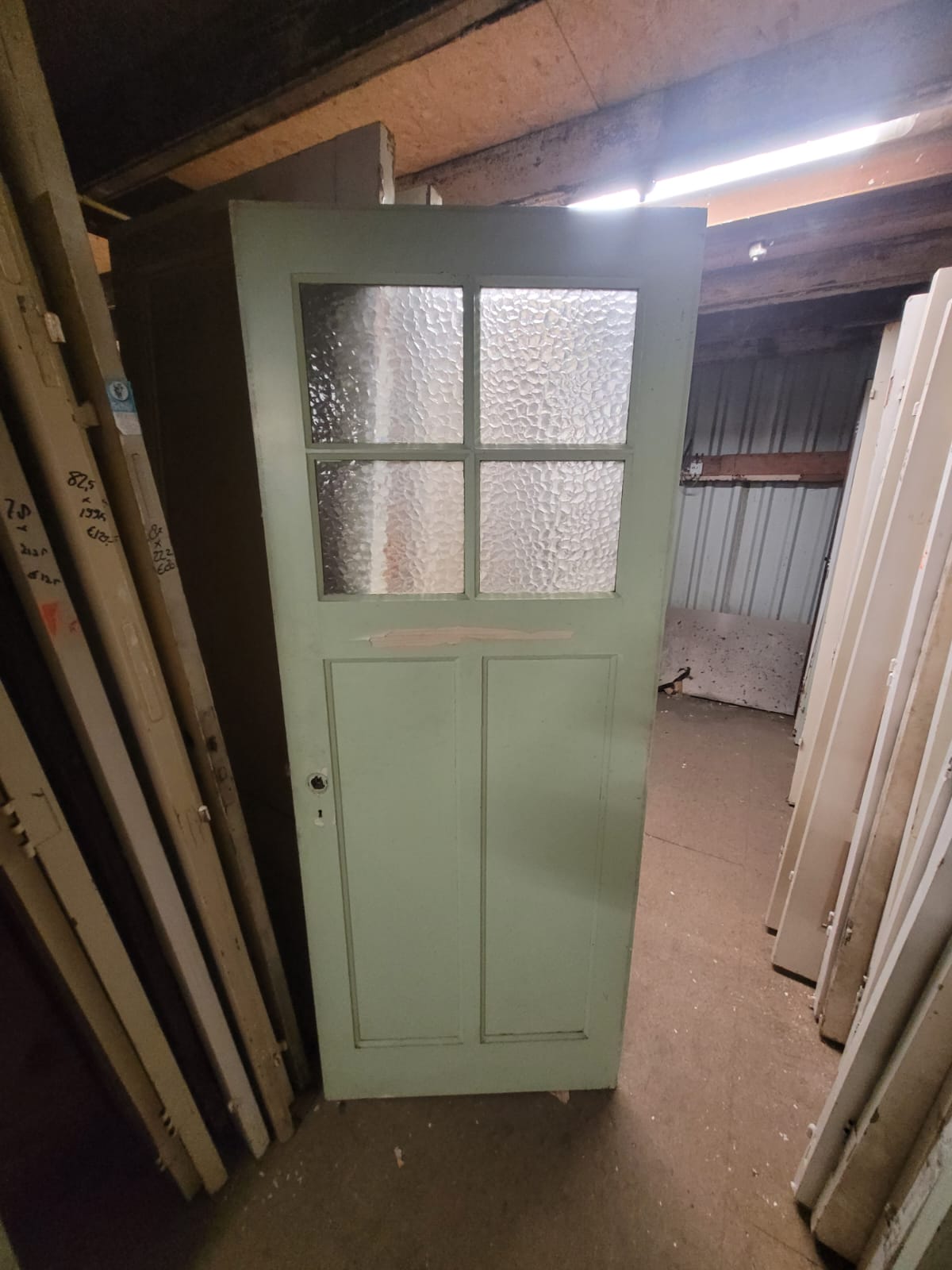 Een authentieke deur met vier glasruiten als bovenlicht en twee houten panelen. Ideaal als je zoekt naar een combinatie van karakter en daglicht. Verkrijgbaar in verschillende glasstijlen, kleuren en maten. Wij kunnen de meeste deuren aanpassen of voorzien van ander glas.