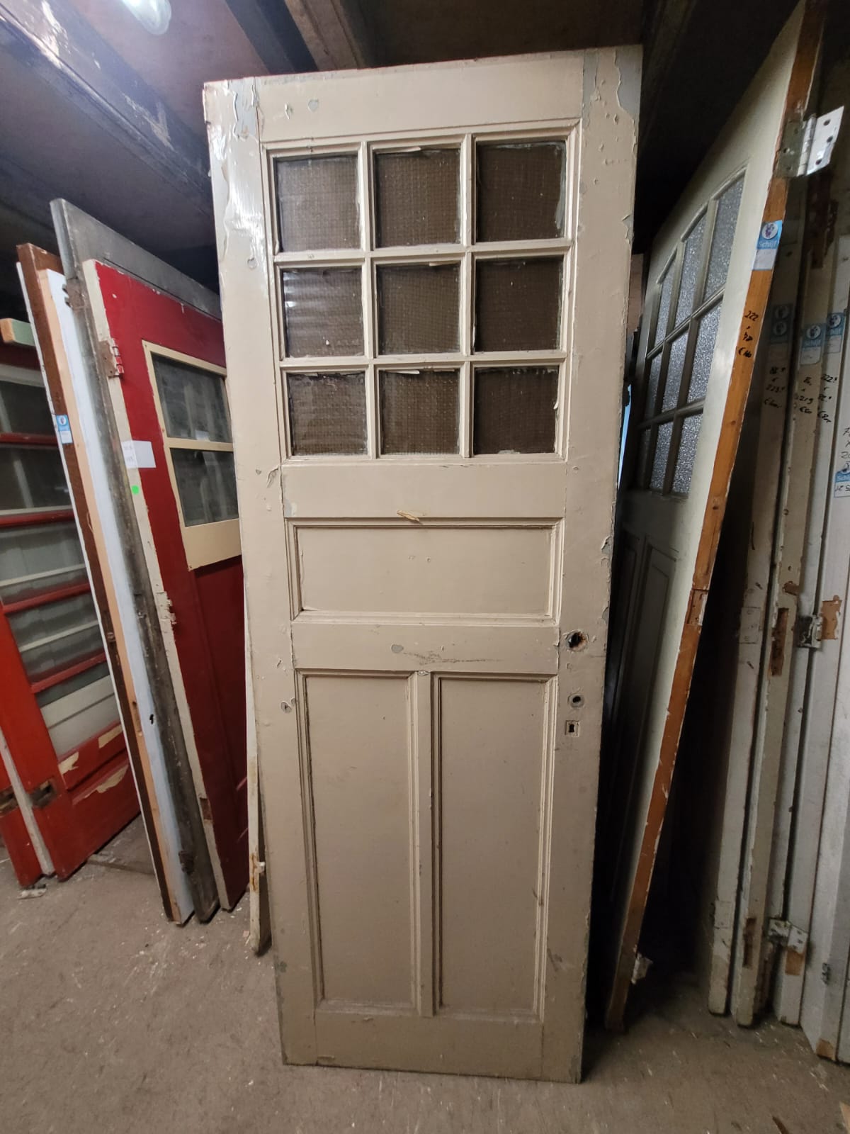 Al deze deuren zijn varierent in style, maar hebben allemaal 9 ruiten als bovenlicht en 2 panelen onder. Ideaal voor herenhuizen, renovaties of klassieke interieurs.