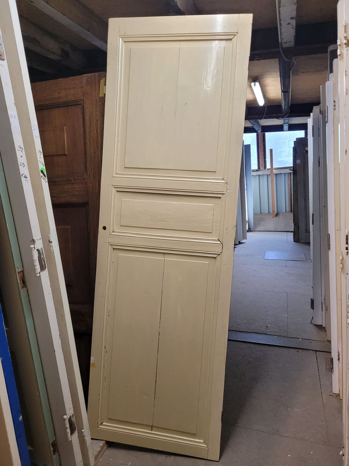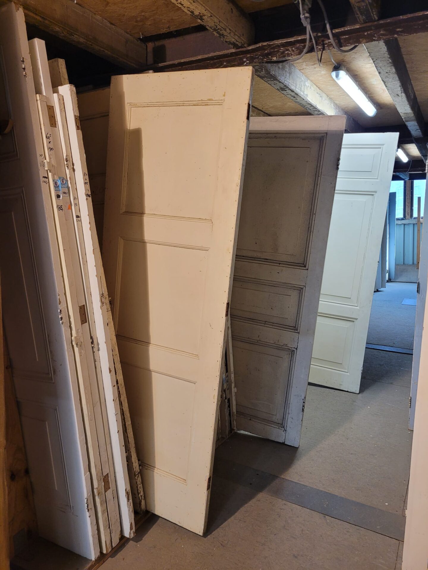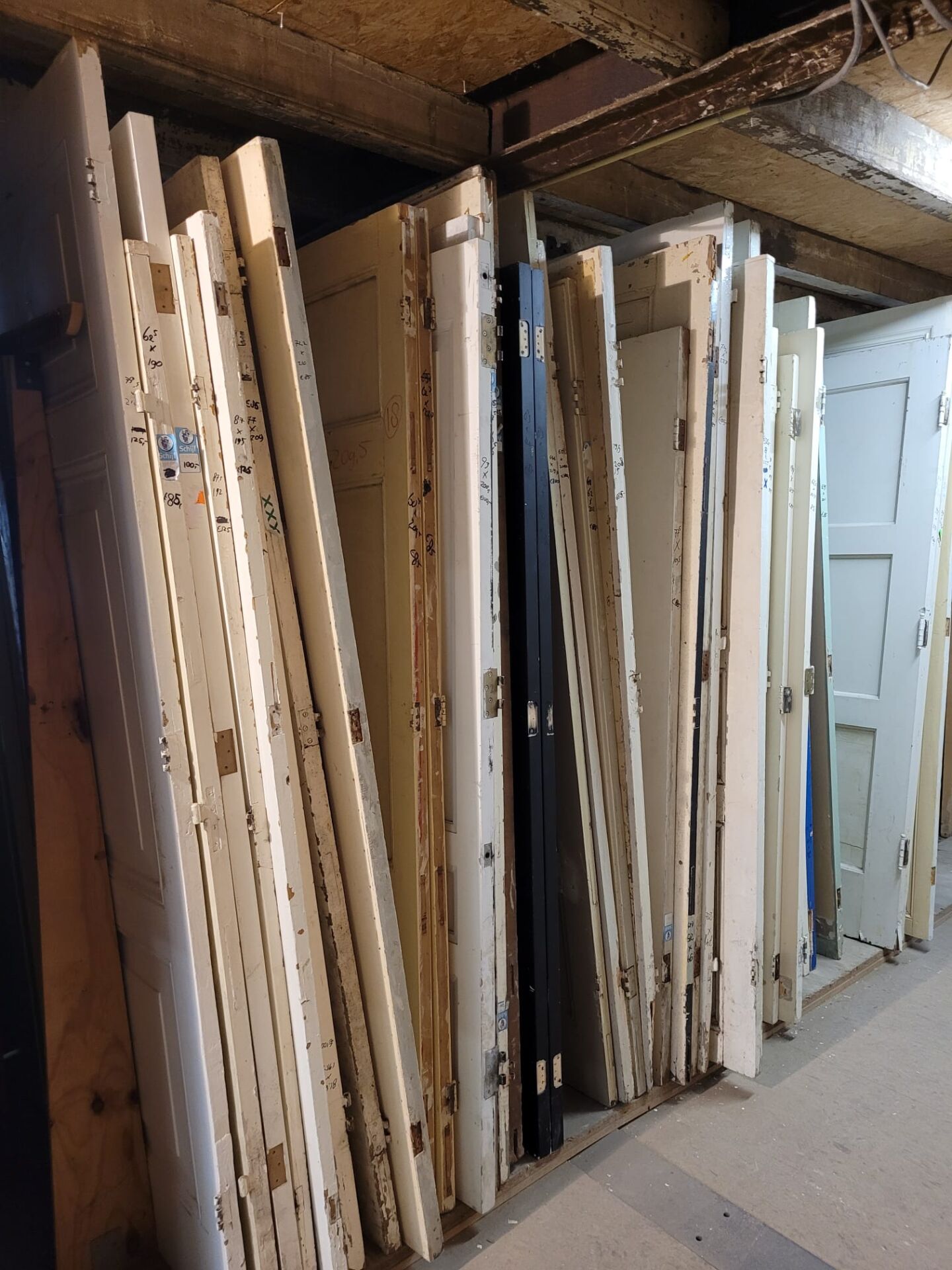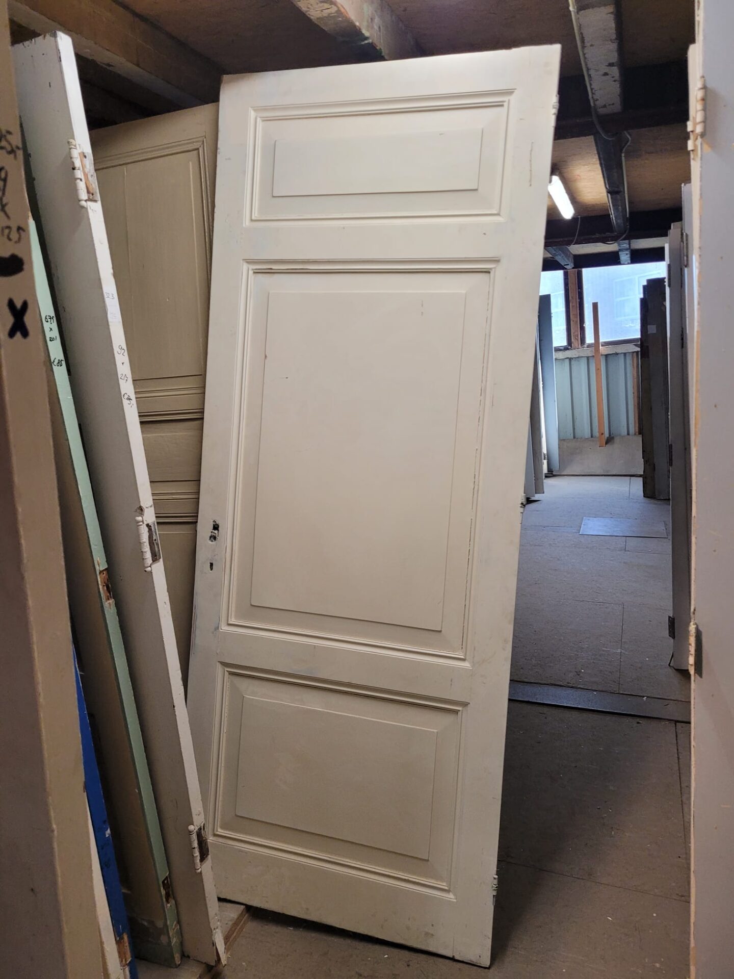 In gang pad 12 staan tientallen drievlak deuren, met indeling van drie vlakken onder elkaar. Elke deur is uniek in maat, vlakverdeling, profiel, afwerking en dikte, waardoor je altijd iets bijzonders kunt vinden dat bij jouw project past.