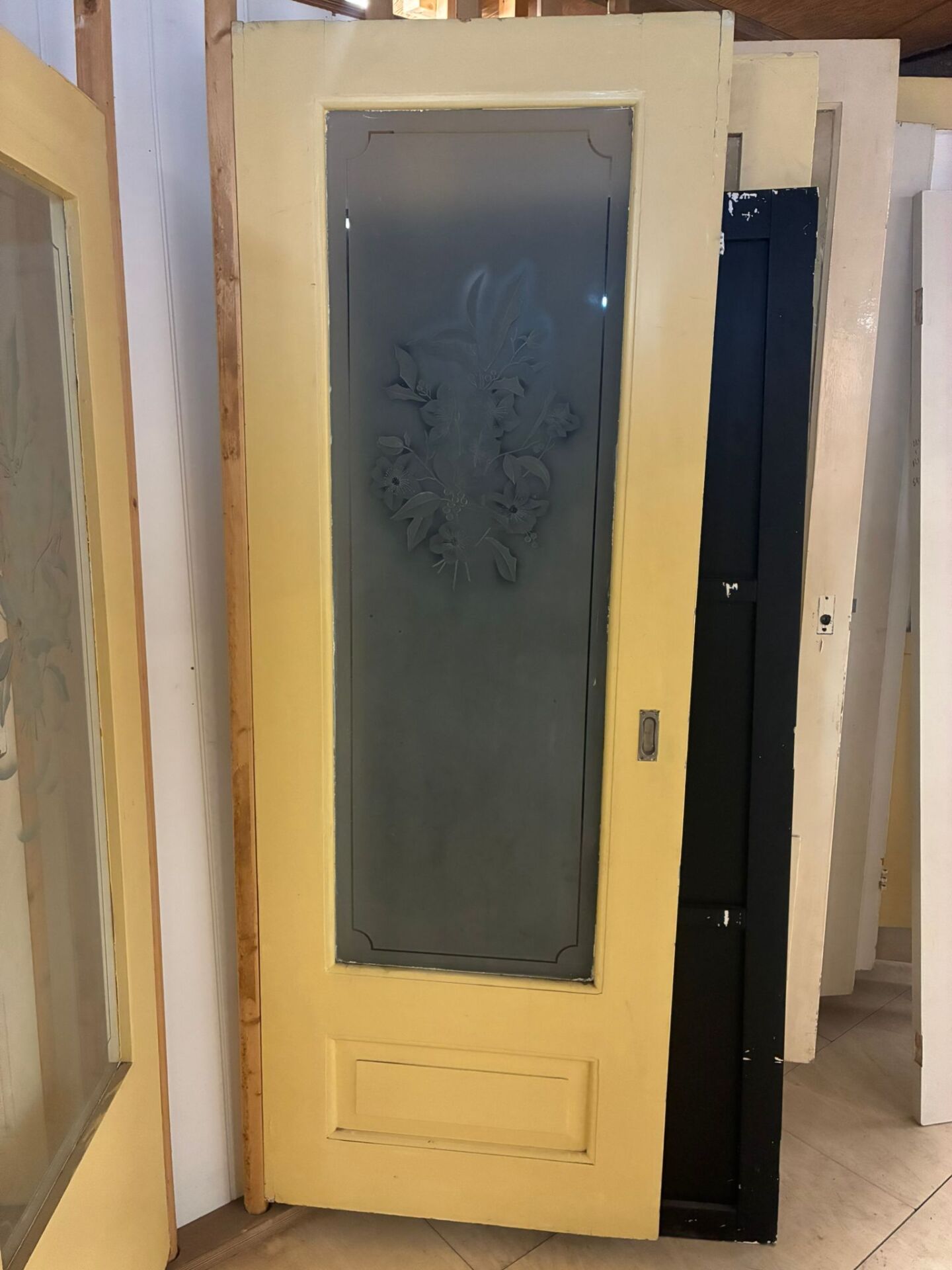 Op de tweede verdieping hebben we al onze deuren met bijzonder glas staan of hangen in de waaier. Hier kan gemakkelijk door de deuren gebladerd worden, zonder de deuren te beschadigen. Voor het fotograferen van de deuren hebben we een vlakke deur achter het glas gezet om zo goed mogelijk het glas vast te kunnen leggen. Wil je de deur in volle pracht zien? Kom langs in de winkel om elk detail met eigen ogen te bekijken.
