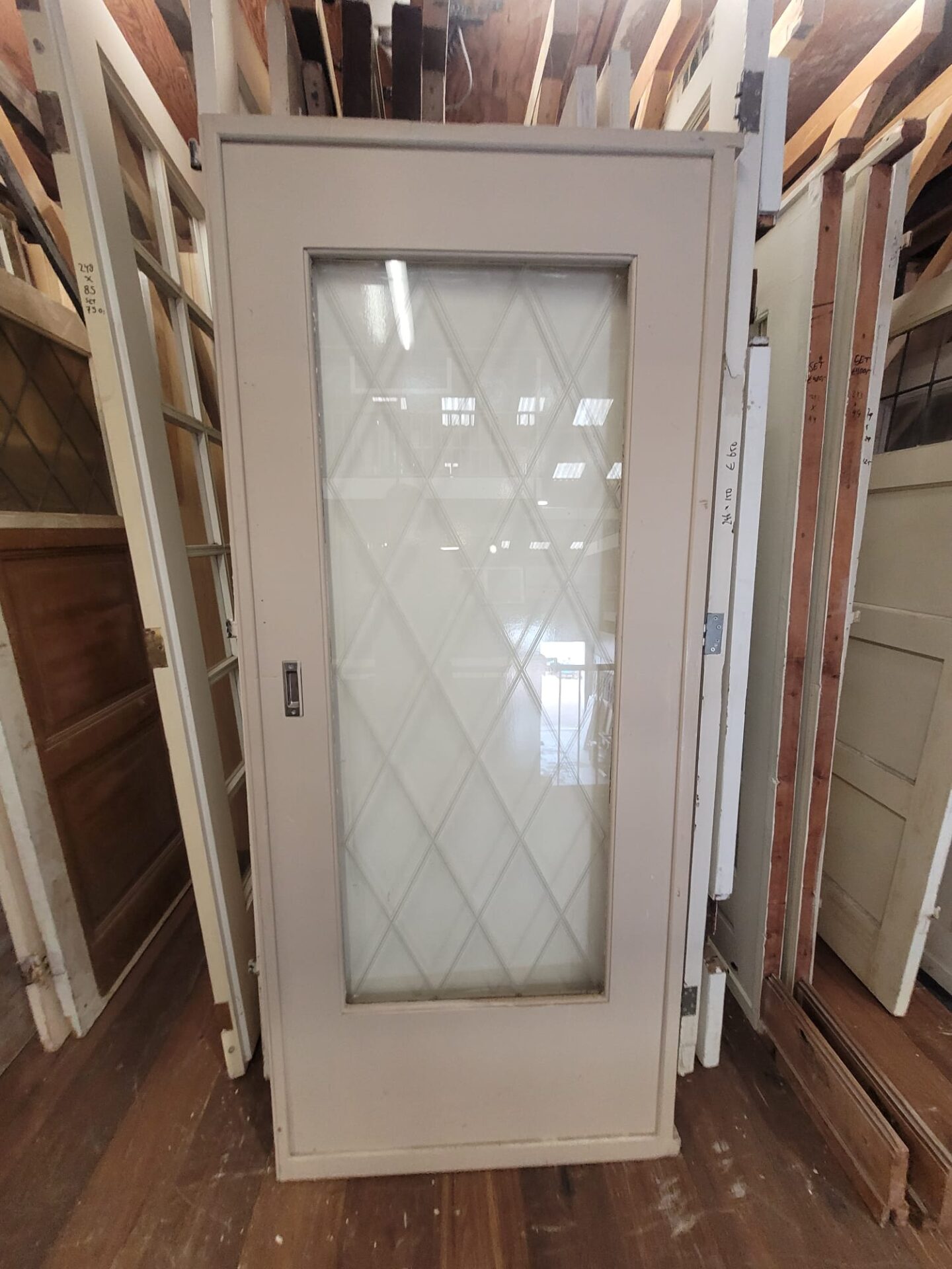 Op de tweede verdieping hebben we al onze deuren met bijzonder glas staan of hangen in de waaier. Hier kan gemakkelijk door de deuren gebladerd worden, zonder de deuren te beschadigen. Voor het fotograferen van de deuren hebben we een vlakke deur achter het glas gezet om zo goed mogelijk het glas vast te kunnen leggen. Wil je de deur in volle pracht zien? Kom langs in de winkel om elk detail met eigen ogen te bekijken.