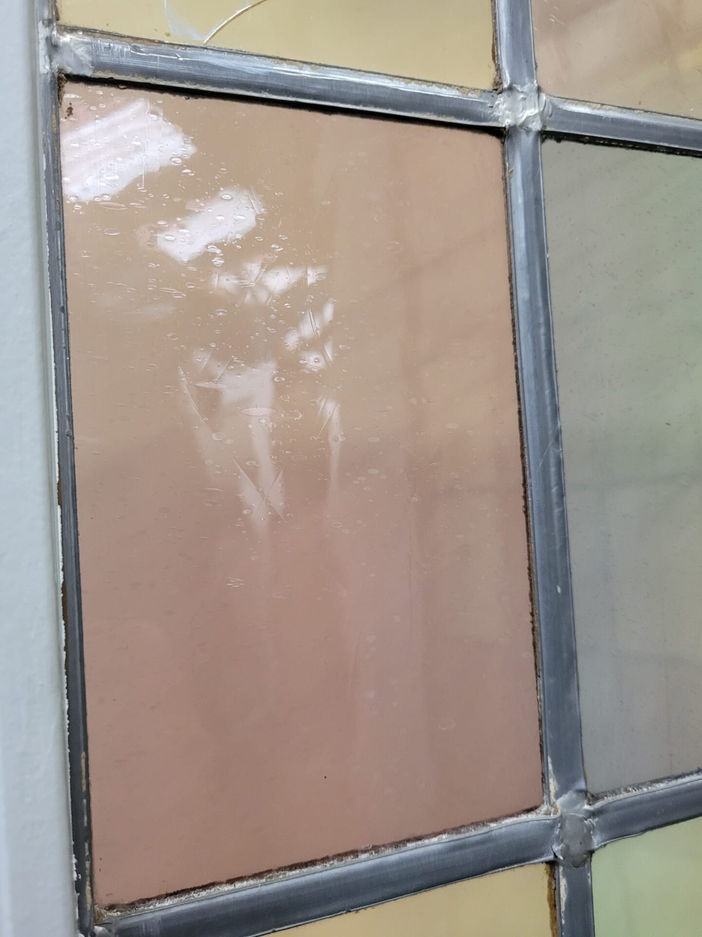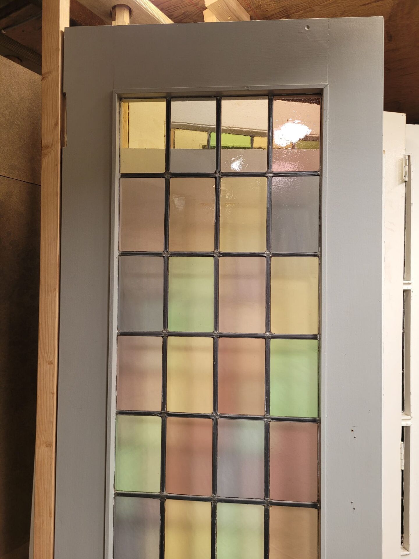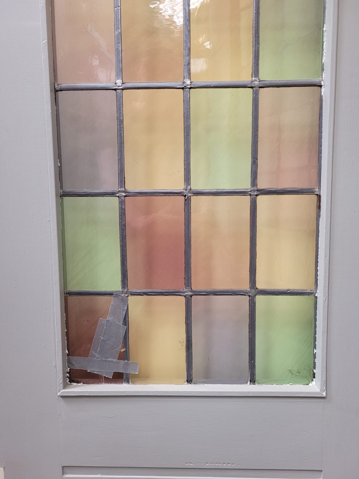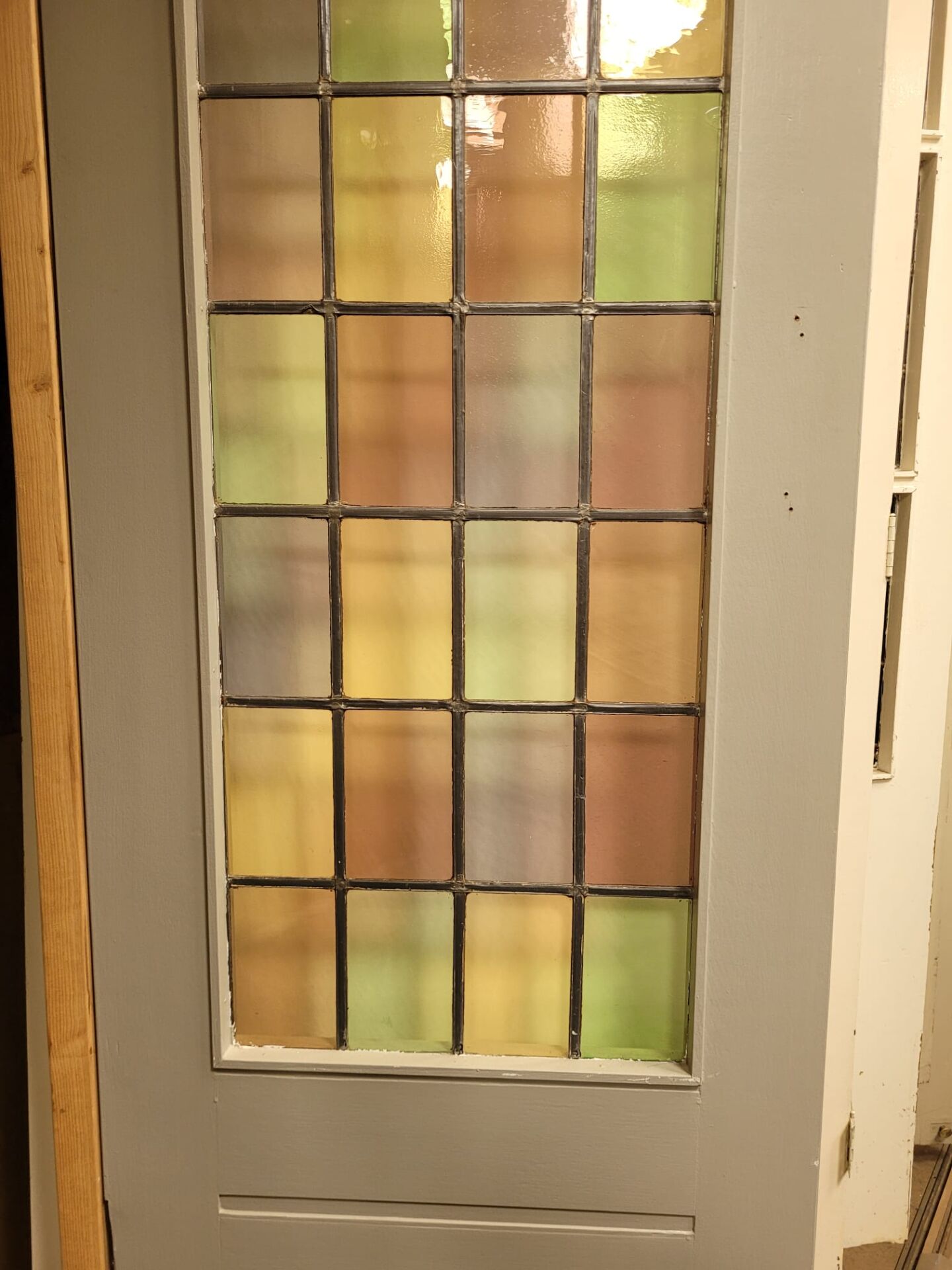 Een aantal ruitjes zijn beschadigd. Je kan er voor kiezen om dit zo te laten, maar wij hebben een aantal handgeblazen ruiten op voorraad om de deuren te kunnen herstellen. Ook het op maat maken is mogelijk!