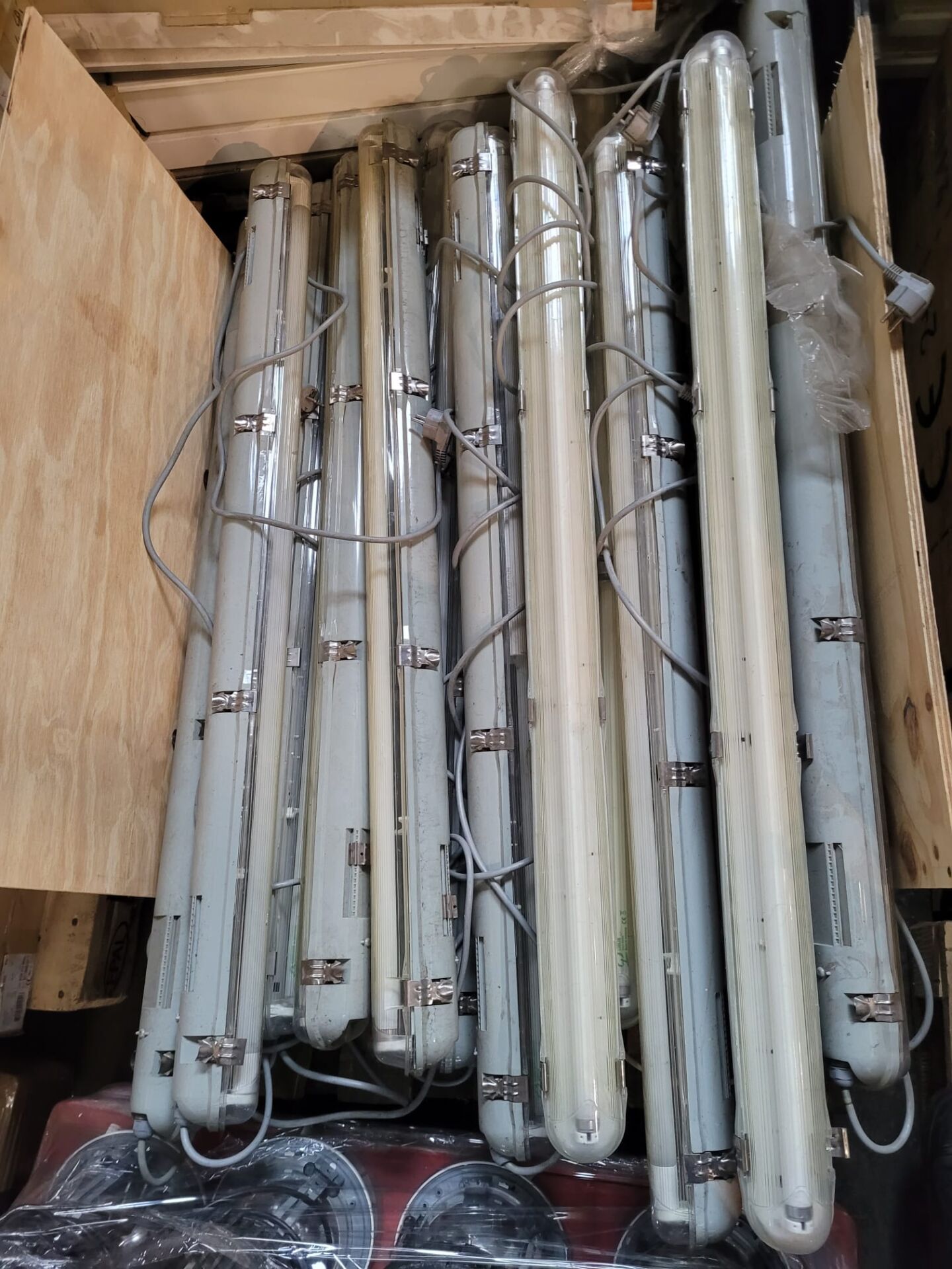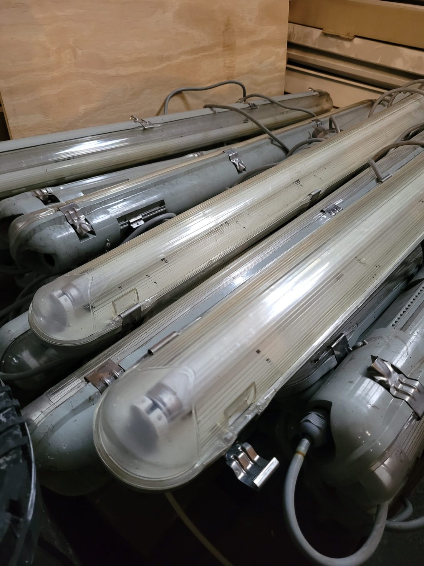 Deze industriële verlichtingsarmaturen met TL-buizen zijn perfect voor ruimtes waar goed, helder en betrouwbaar licht nodig is. Ze komen uit verschillende bedrijfs- en projectpanden en staan bekend om hun stevige behuizing en lange levensduur.