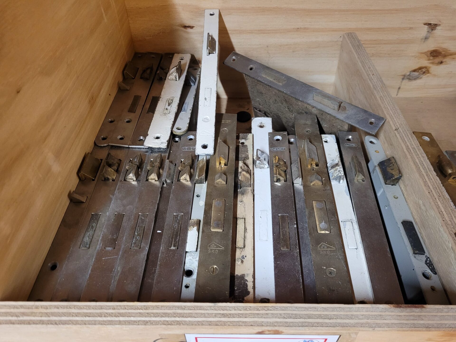 De grote insteeksloten in onze winkel zijn een mix van gebruikte exemplaren. De sloten zijn nog volledig functioneel en soms zelfs compleet met sluitplaat. Een ideale keuze voor wie authentieke uitstraling wil combineren met stevigheid.