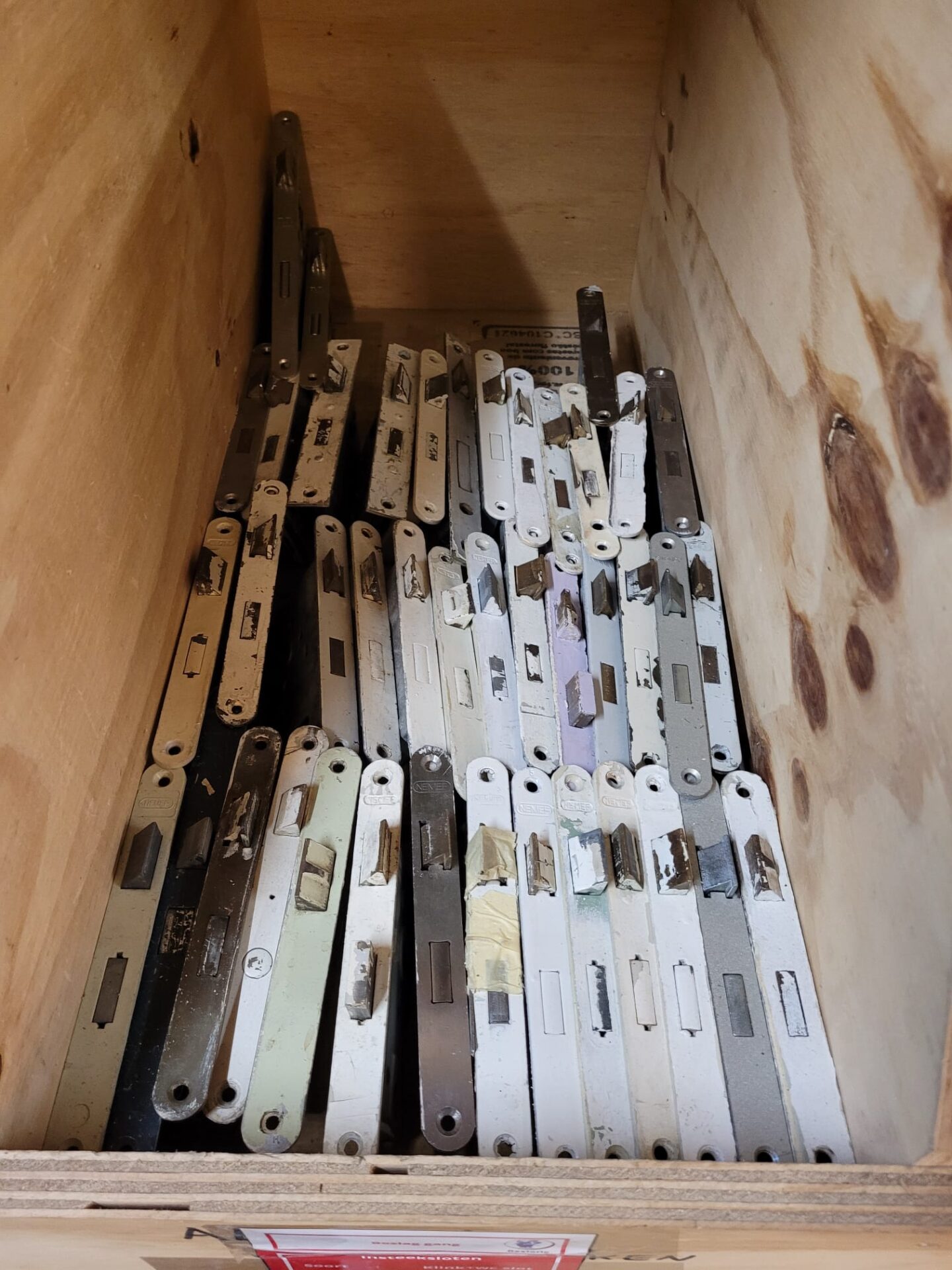 Let op: sommige sloten zijn nog voorzien van de originele sluitplaat, andere zijn los. De insteeksloten zijn geschikt voor standaard wc-draaiknoppen.