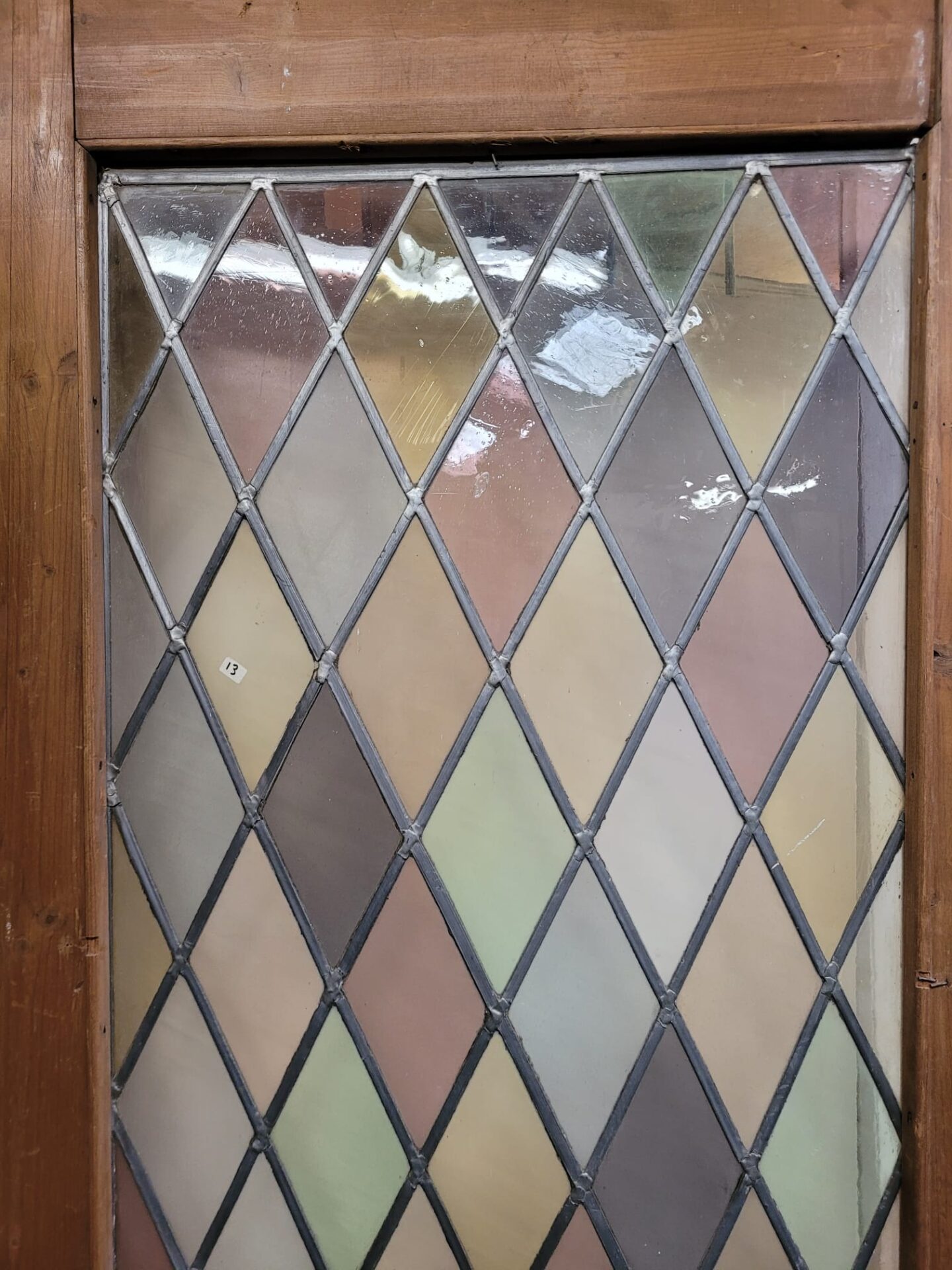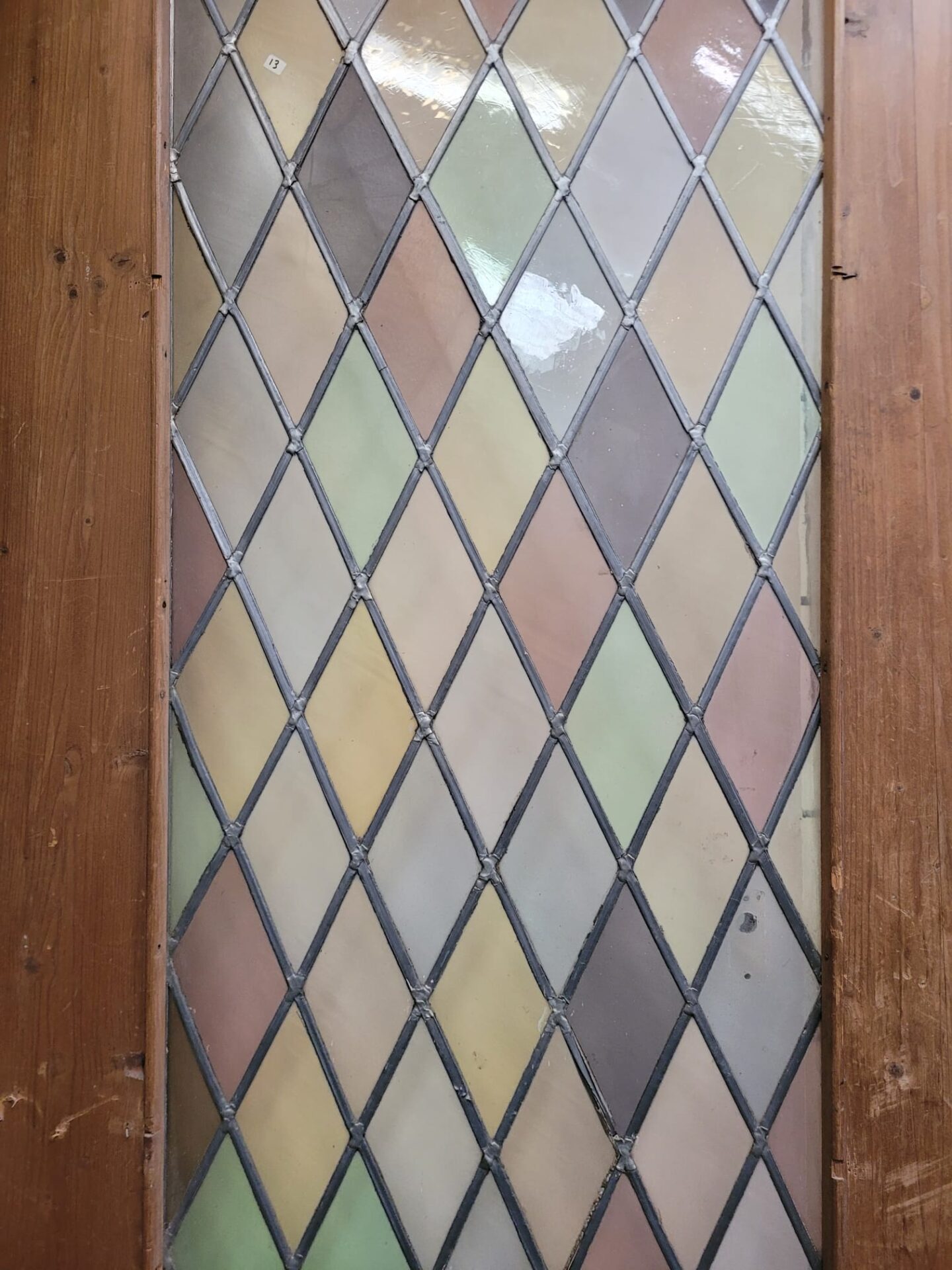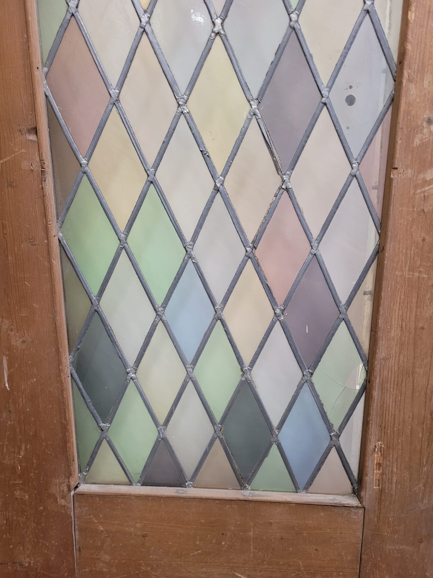 Deze glas in lood deur bestaat al jaren en kan zeker nog een ronde mee. De deur zelf is nog in prachtige hout staat. Wat deze deur zo bijzonder maakt is het gekleurde glas dat geblazen is! Dus geen fabriek glas. Daarbij lopen de wiebers van groot naar klein wat ook niet veel voorkomt.