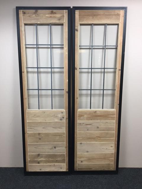 Loftdeuren gemaakt van glas in lood ramen en steigerhout.