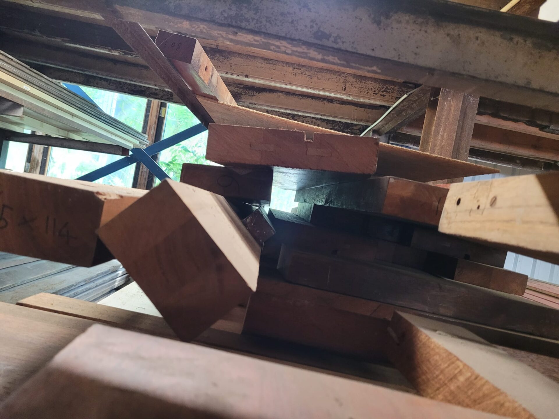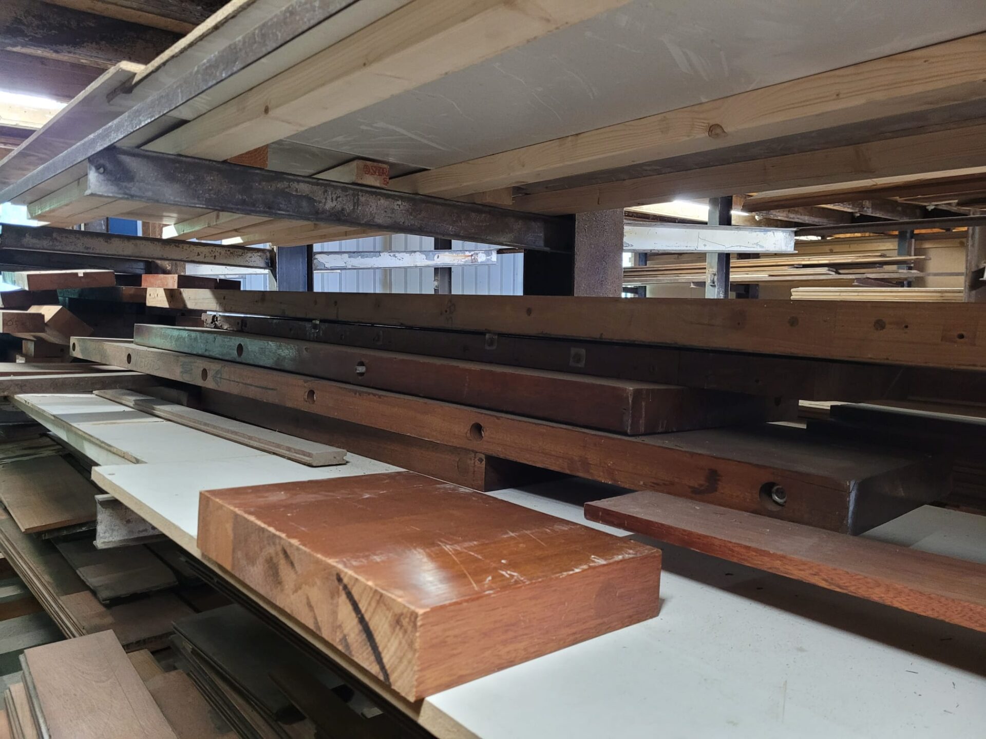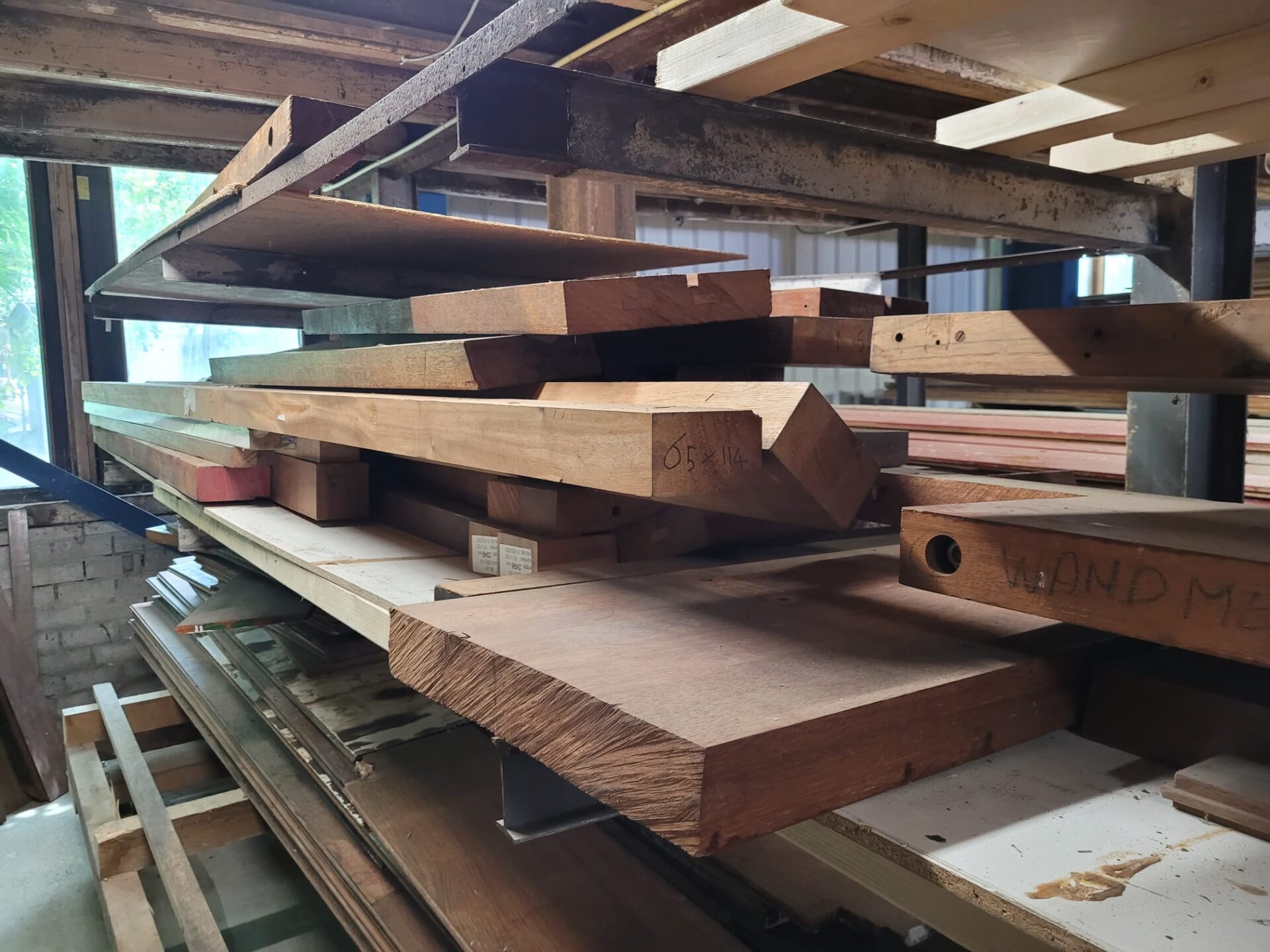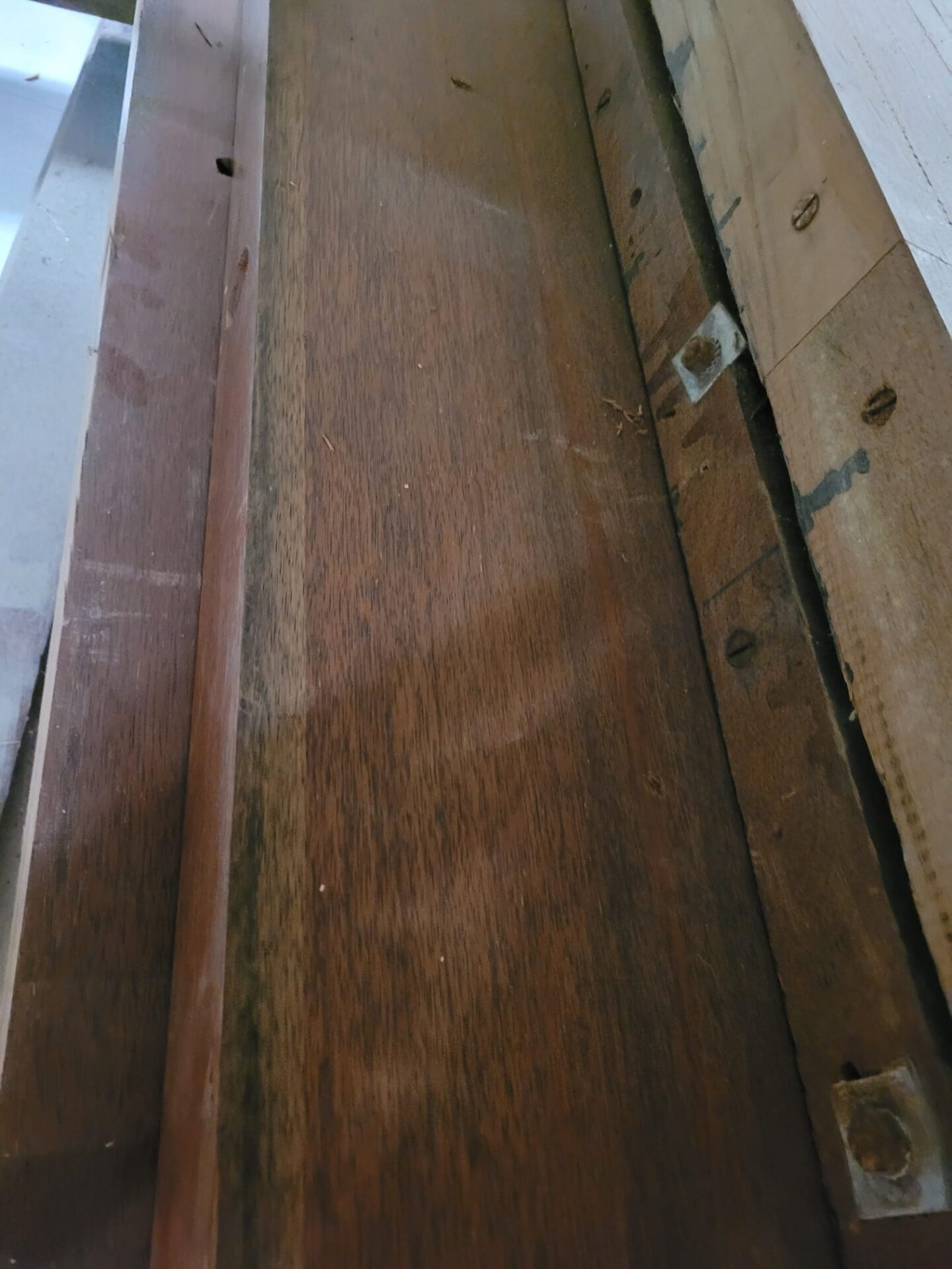 Een ruige en karaktervolle restpartij Merbau met een verhaal. Deze planken zijn 4 cm dik en komen van een voormalig wandmeubel, wat betekent dat er hier en daar nog boutgaten of andere bevestigingssporen zichtbaar kunnen zijn. De breedtes en lengtes variëren, maar dat maakt juist elke plank uniek. Merbau is een harde, duurzame houtsoort met een warme, roodbruine kleur – perfect voor robuuste meubels, werkbladen of creatieve projecten waarbij uitstraling en hergebruik samenkomen.
