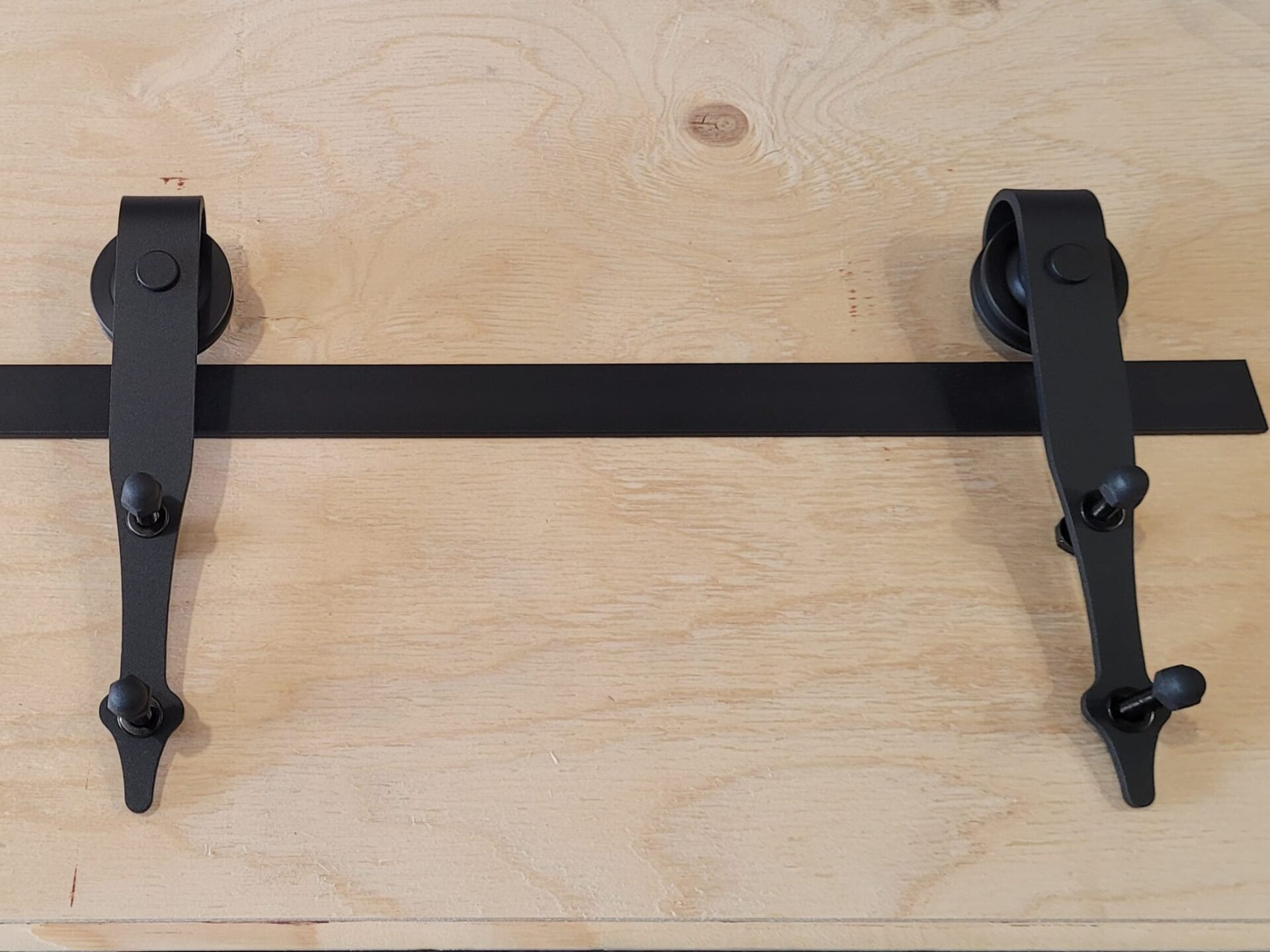 De rail en wielen zijn gepoedercoat, wat staat voor een langdurige, matte afwerking. Combineer het met houten deuren voor een krachtig contrast.