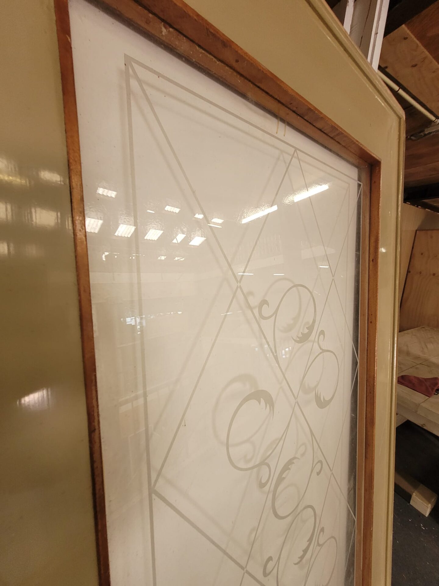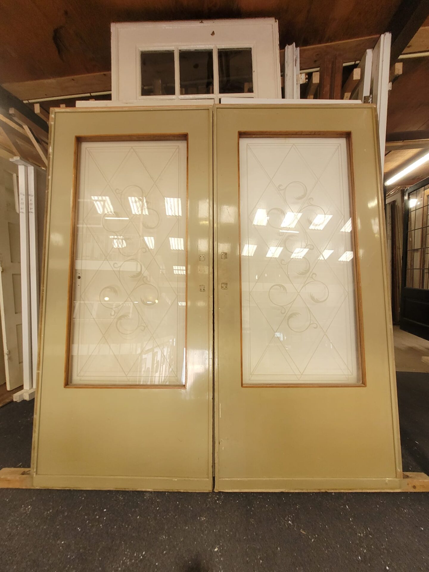 Deze set deuren zijn voorzien van prachtig geëtste ruiten. De tekening heeft ruiten met een krulpatroon. Niet alleen elegant maar ook authentiek!