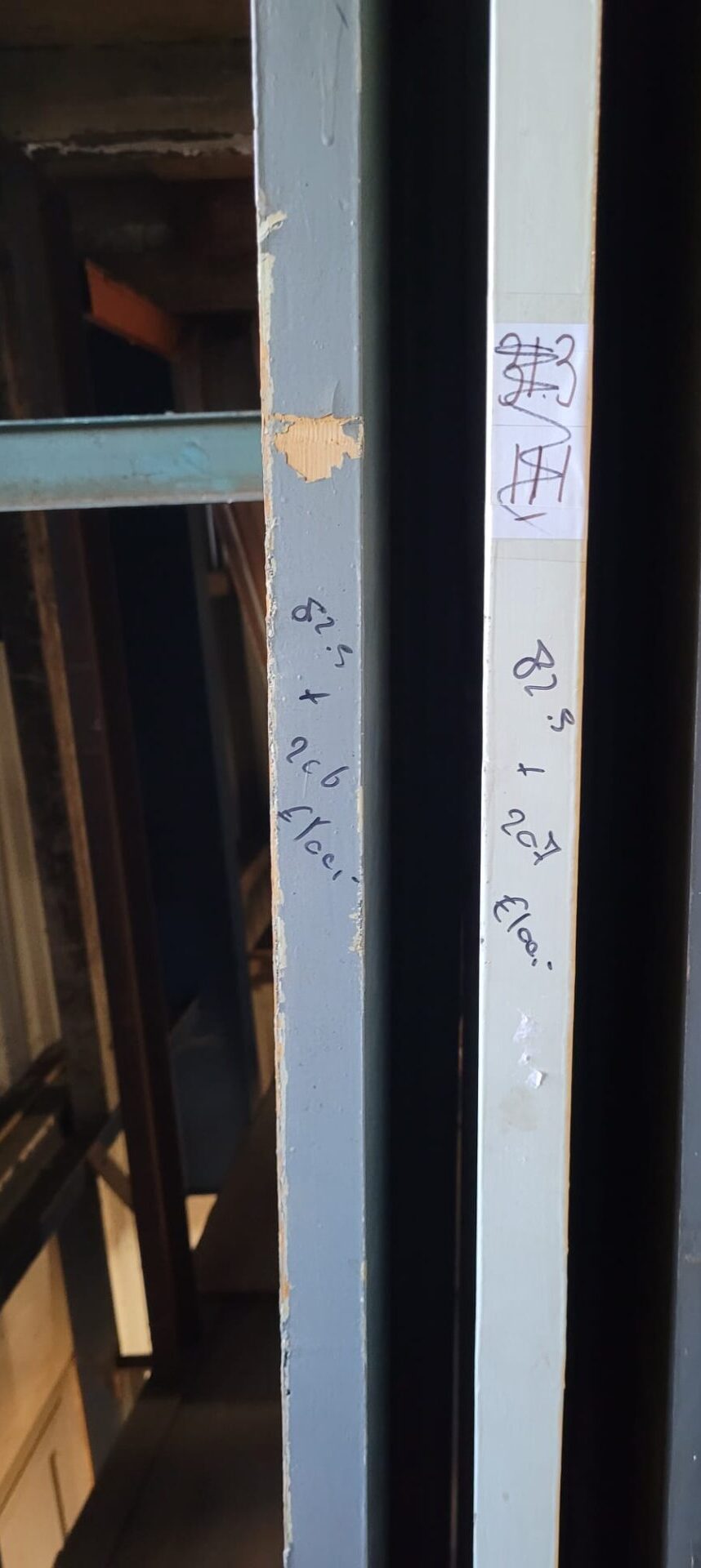 In onze gangpad 12 hebben we 2 bijzondere deuren die afkomstig zijn uit een oude monumentenwinkel. Deze deuren hebben een éénvlak ontwerp met een sierlat in het midden, waardoor het lijkt alsof er twee vlakken zijn. Aan beide zijden is het uiterlijk identiek.