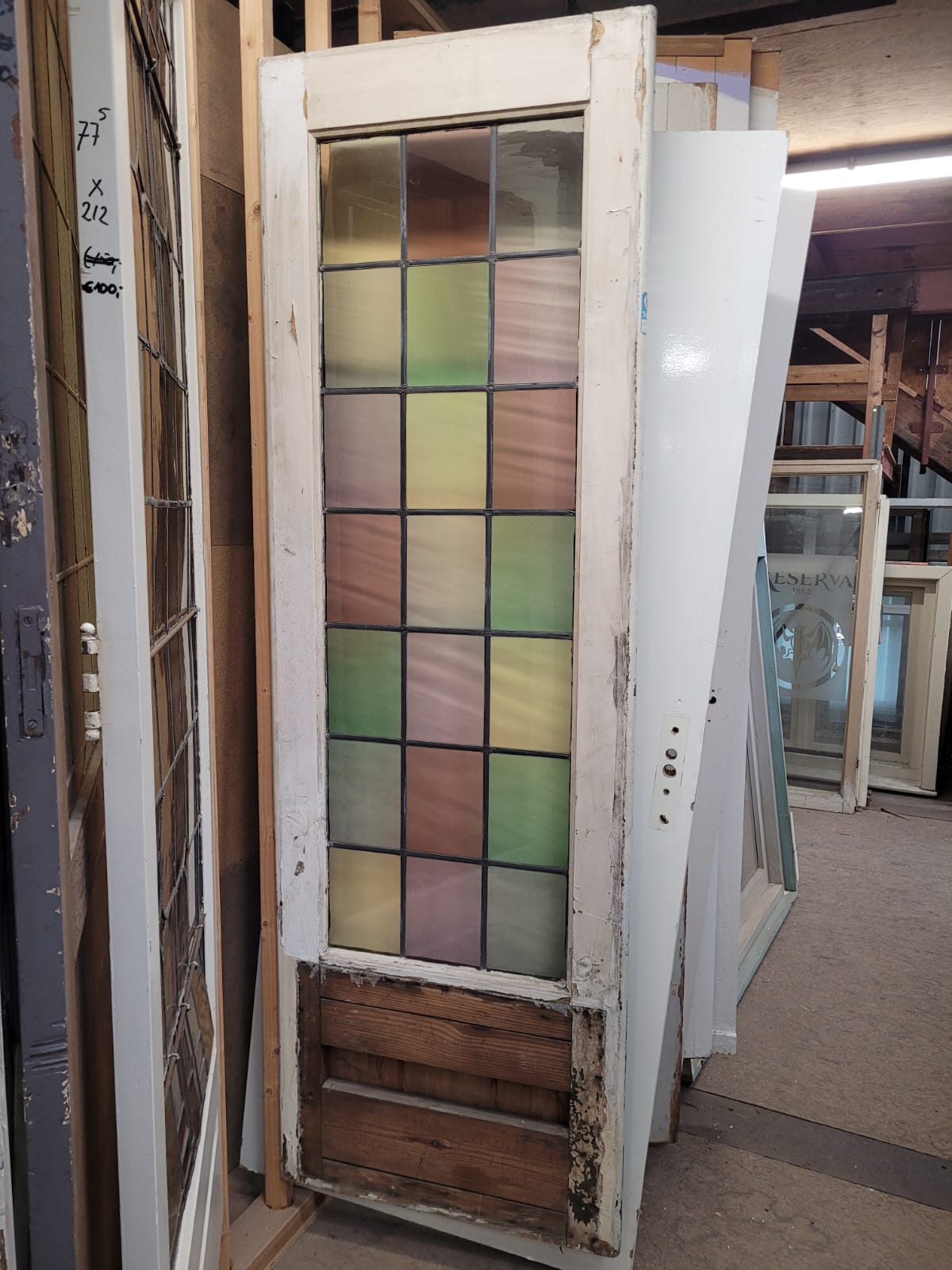 Deze glas in lood deur bestaat al jaren en kan zeker nog een ronde mee. Wanneer deze deur geschuurd, plamuurt en gegrond wordt ziet deze er weer prachtig uit! Dit is mogelijk om door ons te laten doen, tegen meer prijs, maar zeker een klus die zelf ook gedaan kan worden. Daarbij is het ook mogelijk om deze deur door ons op maat te laten maken voor bij jou thuis.