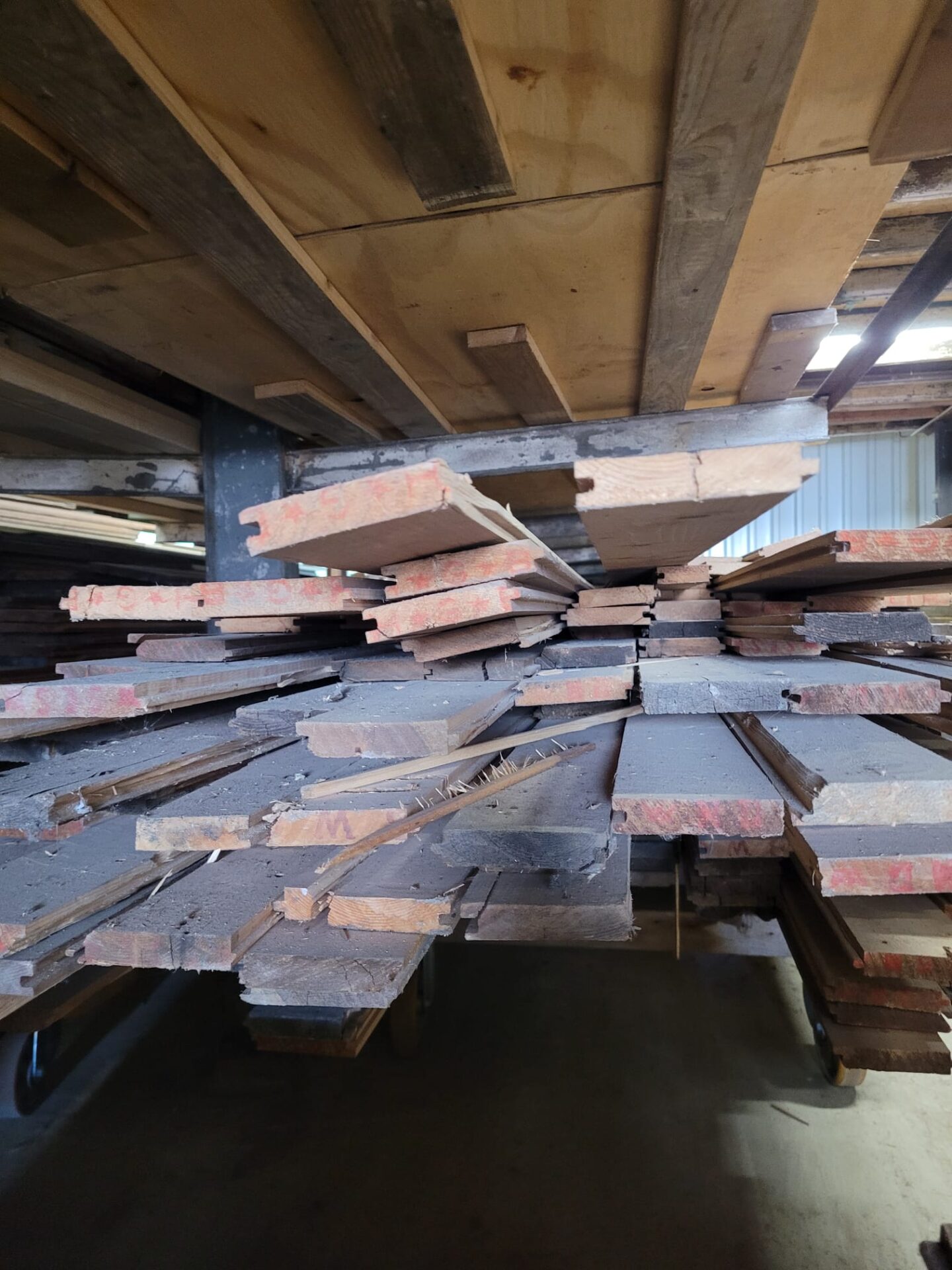 In Pad 2 vind je prachtige gebruikte vuren vloerdelen. Deze vloer is handmatig spijkervrij gemaakt – een intensief proces waarbij elk deel met aandacht is gecontroleerd. Toch blijft het handwerk, dus we kunnen niet met 100% zekerheid garanderen dat elk spijkertje eruit is. Hou daar rekening mee bij verwerking.